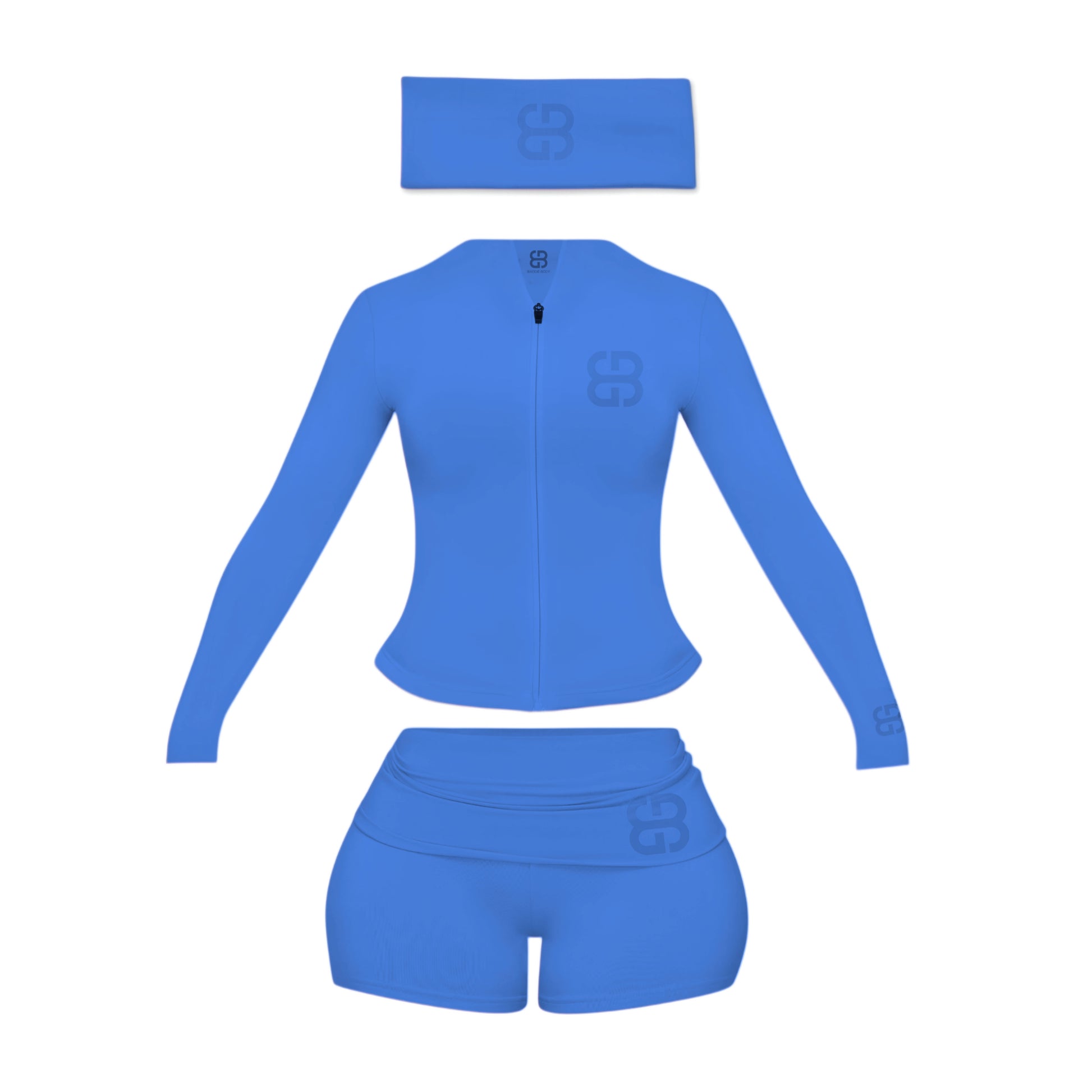 Turn heads while staying comfortable in our Baddie Body Mini Shorts Set. Designed with premium, ultra-soft stretch fabric, this set moves with you while maintaining its shape — so you’re snatched without sacrificing comfort. The Baddie Body logo zip-front jacket, Fold-over shorts, and matching headband create a flawless, coordinated look perfect for lounging, errands, or light workouts for every baddie.