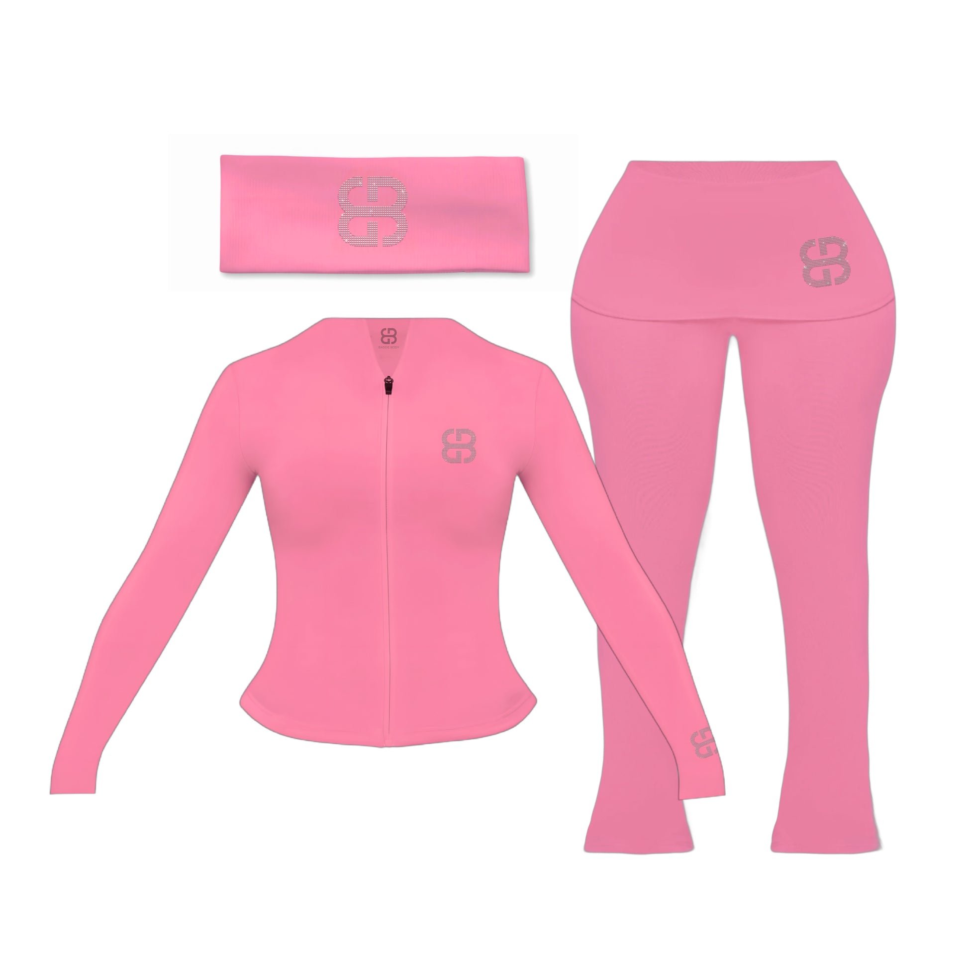 This 3 piece set is what being a “BADDIE” is all about! From the hand placed crystal logos to the beautiful vibrant colors this set screams with confidence! Very stretchy, very comfy, and very fashionable!